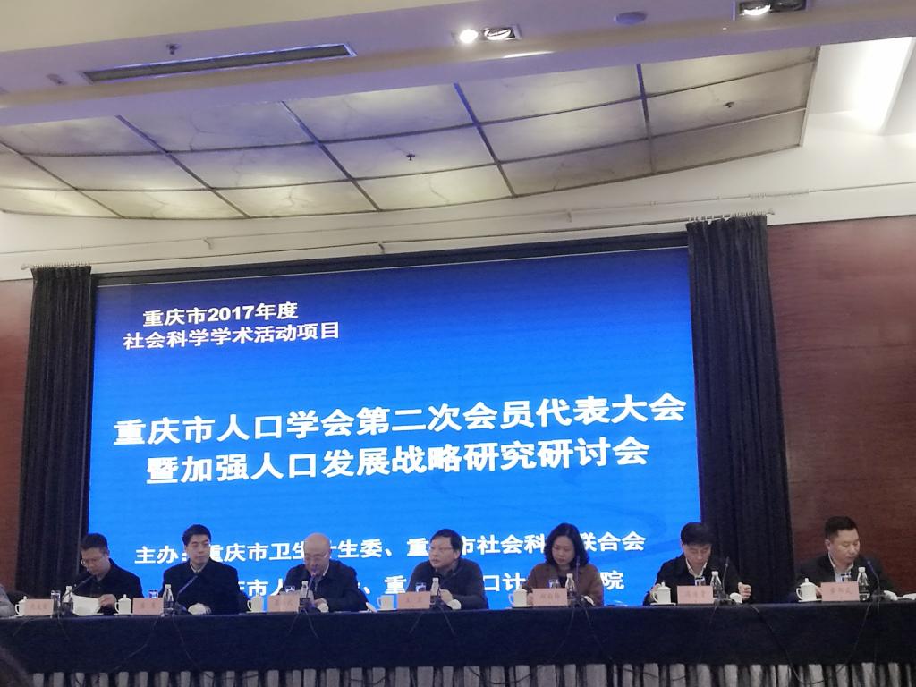 12月20日至21日,重庆市人口学会第二次会员代表大会暨加强人口发展战略研究研讨会在重庆市君豪大饭店成功召开。中国人口学会会长、中国人民大学翟振武教授、中国人民大学研究生院副院长段成荣教授、重庆市卫计委副主任王卫博士、市社科联潘勇副主席、市卫计委无良和副主任、市民政局余东海副局长、四川外国语大学郑白玲副校长、市人口和计划生育科研院党委书记黄邦成、中国人口报社理论部主任杨利春等来自全国近两百位代表出席了此次盛会。