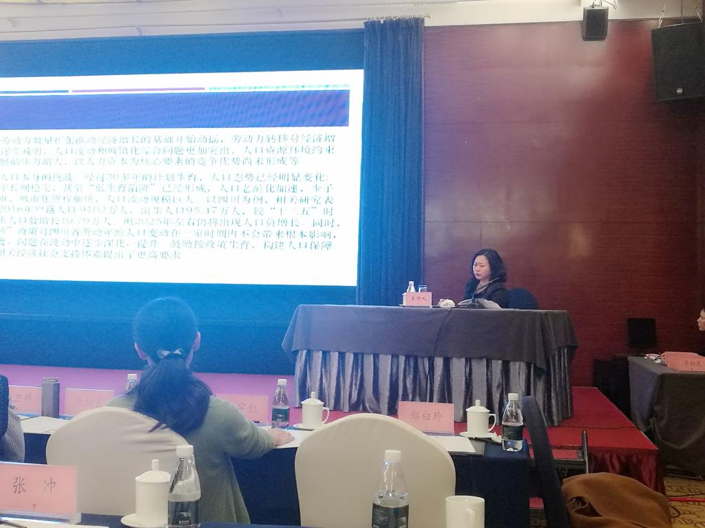 随后,郑白玲在二楼国际会议室主持了下午的专题研讨会。中国人口与发展研究中心黄匡时研究院使用最新统计数据,对重庆市人口健康预期寿命进行了测算。研究表明,重庆市人口预期寿命呈增长趋势,但人口亚健康问题却趋向高发阶段;西南财经大学王学义教授针对经济社会双重转型升级过程中的重大人口问题进行了深入分析。他认为,在现代化社会转型中,随着流动人口的增加,家庭规模日趋小型化。如重庆市家庭2030年将达到1120万户,但平均家庭户规模只达到2.5人/户,且一人户比重不断上升,占比将达到29.72%;四川大学王卓教授深入探讨了老年人口的生活质量问题。她认为,在城市人口预期寿命愈来愈长的今天,老年期限也愈来愈长。根据调查发现,62.3%的老年人口在漫长的老龄期间生活质量无法得到保障,尤其是高龄老年人的生活质量亟需提升;重庆大学尹希果教授从经济学视角分析了大城市流动单身青年大量独居,出现了诸如“空巢青年”的社会现象。