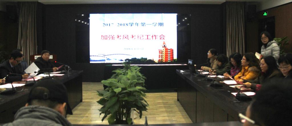 为进一步严肃考风考纪,确保学校考试工作的顺利进行,1月5日下午,我校2017-2018学年第一学期加强考风考纪工作会在办公楼C117召开。校长李克勇,副校长祝朝伟、副校长张季菁以及教务处、学生处老师及学生代表出席了本次工作会。