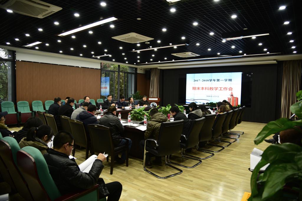 教务处处长严功军围绕“学习贯彻落实高校思政工作会和十九大精神,专业、课程、教材建设及教育教学改革研究,专业评估、课程评估及审核评估迎评工作,教学质量监控与保障体系建设,实验实践教学及创新创业教育,教师教学能力提升,日常教务与考务管理,第二课堂活动开展,辅修与双学位办学及学生校际交流,职能部门协调与院系协作”等十大方面对2017年本科教学主要工作进行了总结。他表示,目前学校各院系改革创新意识、工作责任心越来越强,2017年教务处与院系协作越来越顺畅,教学管理工作有序进行,圆满完成了本年度工作目标,取得了突出成绩。他还从“教学基本状态数据采集、课程教学大纲编制、试卷论文专项检查、双语/全英课程建设、外语级别考试奖励、五位一体评教体系建设、非通用语专业申报与建设、大力推行联合办学、带薪实习、应用研究型大学的建设发展、‘三特’项目建设、经费使用情况及迎接评估验收”等方面部署了下学期工作重点。他希望教务处与各二级院系进一步提升创新改革意识,提高工作的主动性和责任心,加强交流与沟通,进一步理顺机制体制,更好地服务于本科教学发展与人才培养质量提高。
