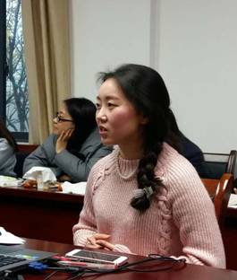 第二位发言的是侯奕茜老师。主题为“基于翻译能力和兴趣培养的‘综合英语’教学改革研究与实践”。侯老师首先指出了翻译本科专业“综合英语”存在的教学问题,然后提出了以PACTE小组提出的翻译能力模式为基础,将“翻译工作坊” (Translation Workshop)引入翻译学院本科2017级“综合英语”课程教学之中的教改思路,详细阐释了翻译专业本科生应具有的六项翻译子能力,并对教改成果提出了预期。