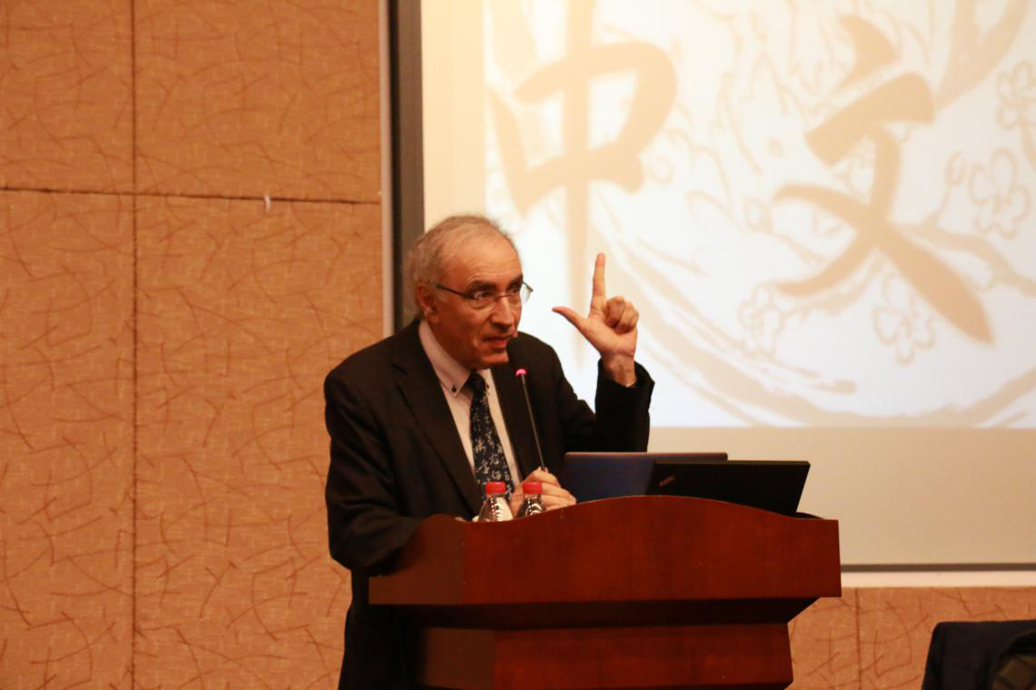 随后,白乐桑教授在宏文楼国际报告厅以“汉语二语学科建设现状及发展前景”为主题进行了演讲。他以自己与中文的第一次接触为出发点,通过将中文与其他语言进行对比阐述,说明汉语不应“以自我为中心”来定义其他事物。他以汉语学习者的角度,通过大量实例生动地讲述了汉语教学中的本体问题——“一元论”和“二元论”。他表示,法国越来越多的学校已将汉语教学列入国民基础教育体系,但想要汉语第二教学全面深度发展,还需进行一次哥白尼式的革命。演讲之后,白教授与我校师生就汉语第二教学教材、不同国家汉语第二教学如何开展等问题展开互动交流。