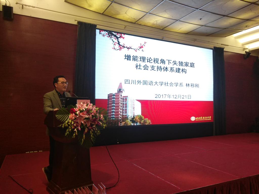 林移刚教授在第二场专题研究研讨会上,以“增能视角的失独家庭社会支持体系建构研究”为题做了精彩的主题发言。林移刚认为,失独家庭是中国实行独生子女政策背景下产生的一个特殊问题,独生子女的"唯一性"使独生子女家庭极具风险。失独家庭父母在承受"白发人送唯一黑发人"的巨大悲痛之中,面临着养老困境、疾病缠身、精神崩溃、生命凋零、亲情落寞、社群疏离等一系列困境与挑战。社会工作的专业价值理念、专业知识和助人技能为介入失独家庭养老问题提供了可行性,社会工作可以从优势视角出发,以增能为手段,通过专业的干预方法有效地改善失独家庭的养老现状,重新建构失独家庭的社会支持网络,实现失独老人的再社会化和生活重建。童峰副教授和郑昊副教授在第二天的加强人口发展战略研究研讨会上也宣读了各自的论文,并与参会专家学者进行了充分的交流。