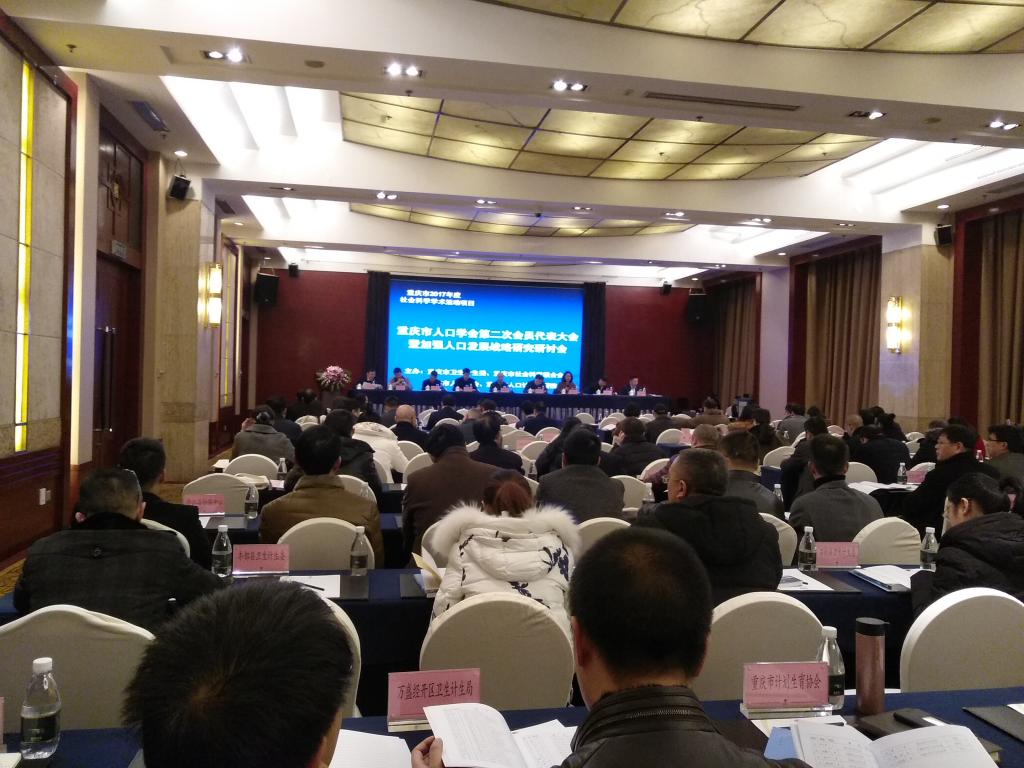 12月20日至21日,重庆市人口学会第二次会员代表大会暨加强人口发展战略研究研讨会在重庆市君豪大饭店成功召开。中国人口学会会长、中国人民大学翟振武教授、中国人民大学研究生院副院长段成荣教授、重庆市卫计委副主任王卫博士、市社科联潘勇副主席、市卫计委无良和副主任、市民政局余东海副局长、四川外国语大学郑白玲副校长、市人口和计划生育科研院党委书记黄邦成、中国人口报社理论部主任杨利春等来自全国近两百位代表出席了此次盛会。