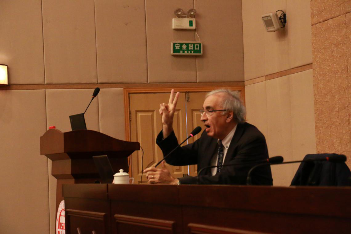随后,白乐桑教授在宏文楼国际报告厅以“汉语二语学科建设现状及发展前景”为主题进行了演讲。他以自己与中文的第一次接触为出发点,通过将中文与其他语言进行对比阐述,说明汉语不应“以自我为中心”来定义其他事物。他以汉语学习者的角度,通过大量实例生动地讲述了汉语教学中的本体问题——“一元论”和“二元论”。他表示,法国越来越多的学校已将汉语教学列入国民基础教育体系,但想要汉语第二教学全面深度发展,还需进行一次哥白尼式的革命。演讲之后,白教授与我校师生就汉语第二教学教材、不同国家汉语第二教学如何开展等问题展开互动交流。